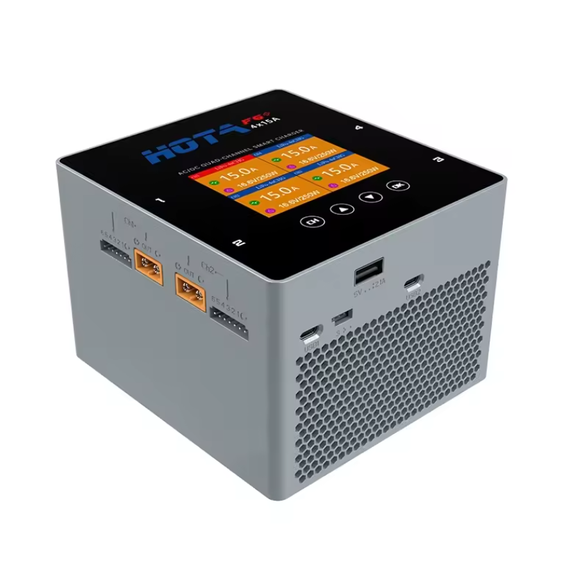Take control of your RC battery charging with the powerful and versatile HOTA F6 Ultra 4-Channel Smart Charger. This high-performance charger is engineered for RC enthusiasts who need to charge multiple batteries quickly and efficiently. Capable of delivering up to 250W and 15A on each of its four independent channels when using DC power (XT90 input required, total 1000W), it drastically reduces waiting times. When powered via AC, it still provides a robust 500W total output.